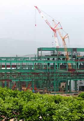 本工程是北營鋼鐵集團有限公司煉鋼主廠房工程,工程鋼結構單體構件重,整個廠房跨度大,為多層鋼結構工程。